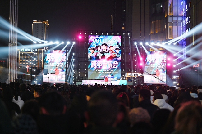 当晚,库尔勒市汇嘉时代广场户外广场及室内中庭两大舞台同步开展跨年音乐会活动,知名歌手、本土乐队、网红达人轮番登台。伴随璀璨灯光与万人倒计时,大家共同迎接新的一年。超万名群众现场参与活动。