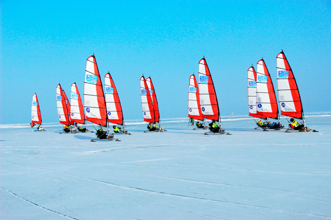 1月10日,在博斯腾湖冰面上,帆船比赛正在进行。(通讯员 都古尔加甫 摄)