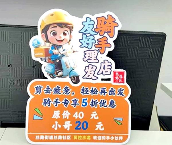 库尔勒市区一家“友好理发店”的宣传牌。(通讯员 朱文睿 摄)
