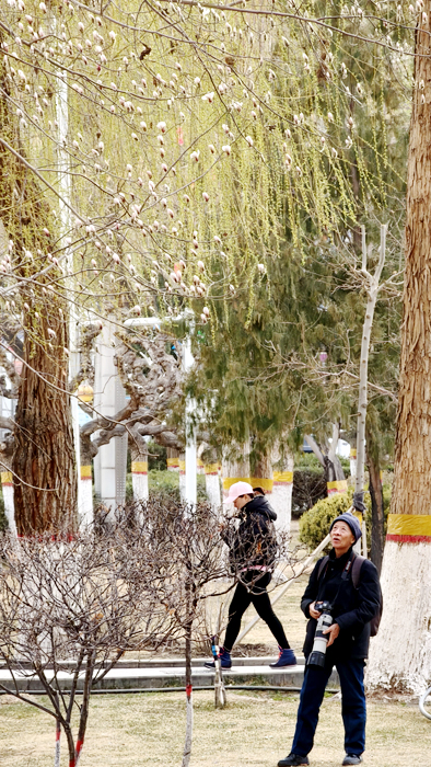 3月17日,库尔勒市人民广场玉兰花盛开,洁白、淡粉的花朵缀满枝头,素雅清新、芳香四溢。市民漫步赏花、拍照打卡,尽享春日美好。(记者 薛兵 摄)