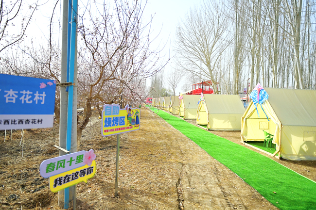 杏花园里,粉嫩的杏花肆意绽放。青砖小道、网红打卡点、自助烧烤区布置其中,尤其是坐落在杏花林中的民俗客房,可供游客多元选择。房间干净整洁,各类设施一应俱全。客房窗外就是杏花,阵阵杏花香扑鼻而来,令人心旷神怡。