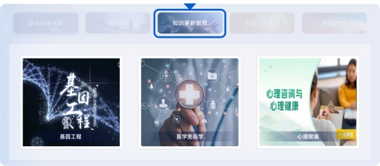 面向专业技术人员知识更新需求,提供基因工程、医学免疫学、心理咨询等课程。
