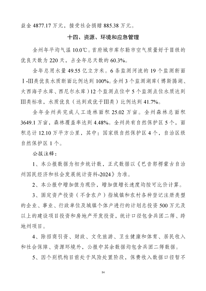 巴音郭楞蒙古自治州2024年国民经济和社会发展统计公报